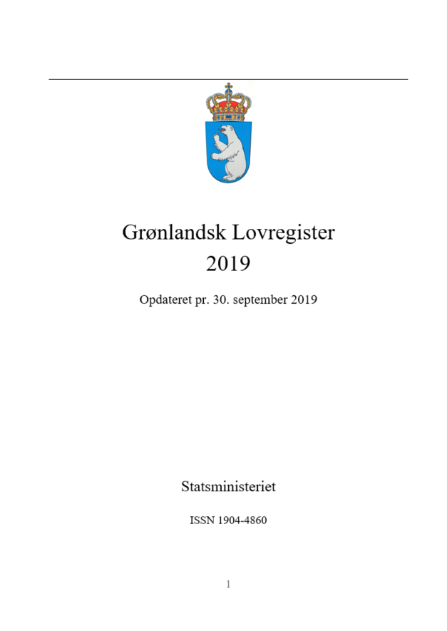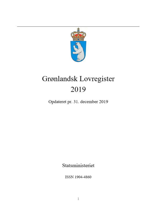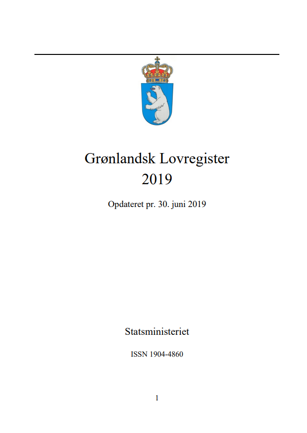 Grønlandsk lovregister 2019 for hhv. 1., 2., 3 og 4. kvartal